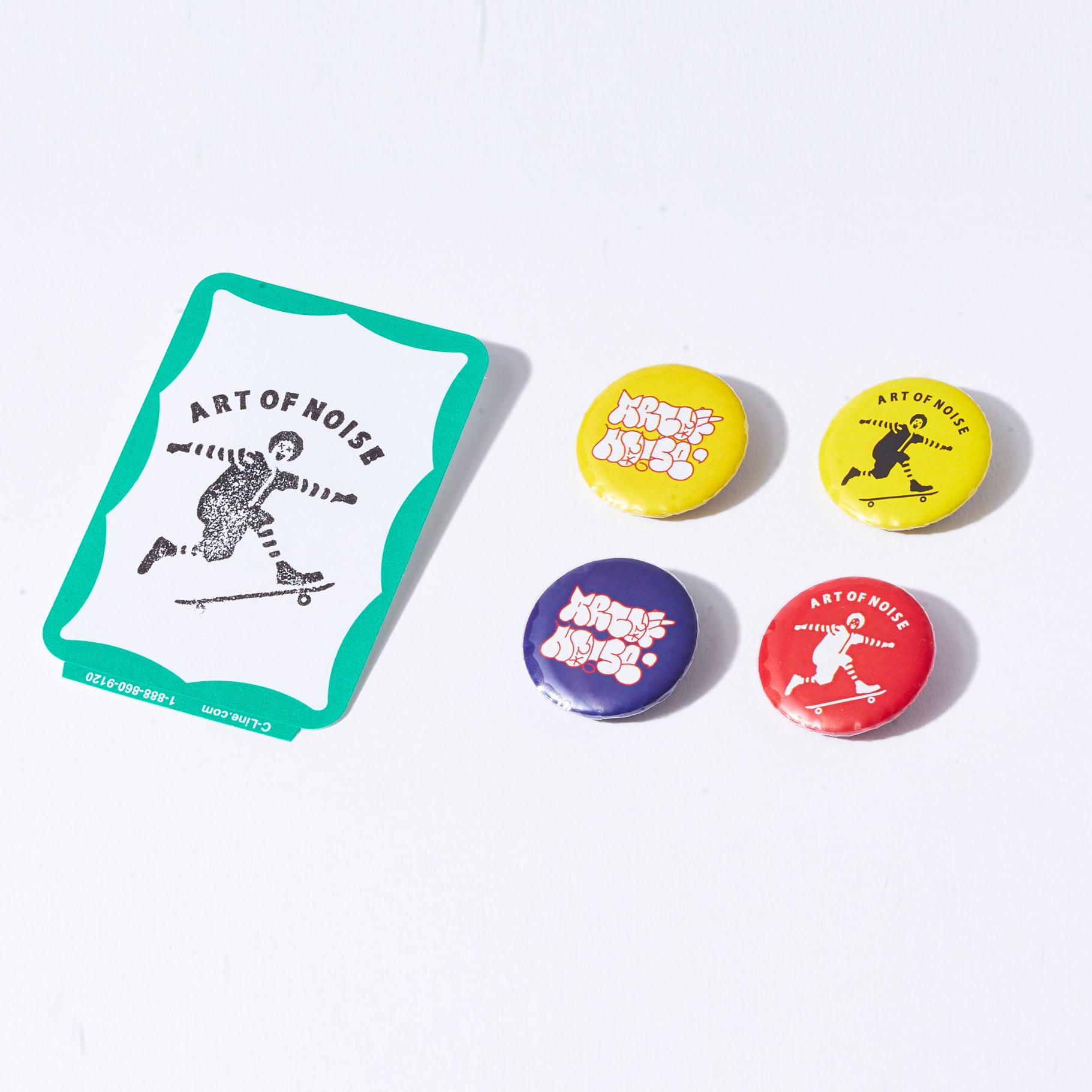 35mm缶バッチ4つとステッカー1枚のセットです。